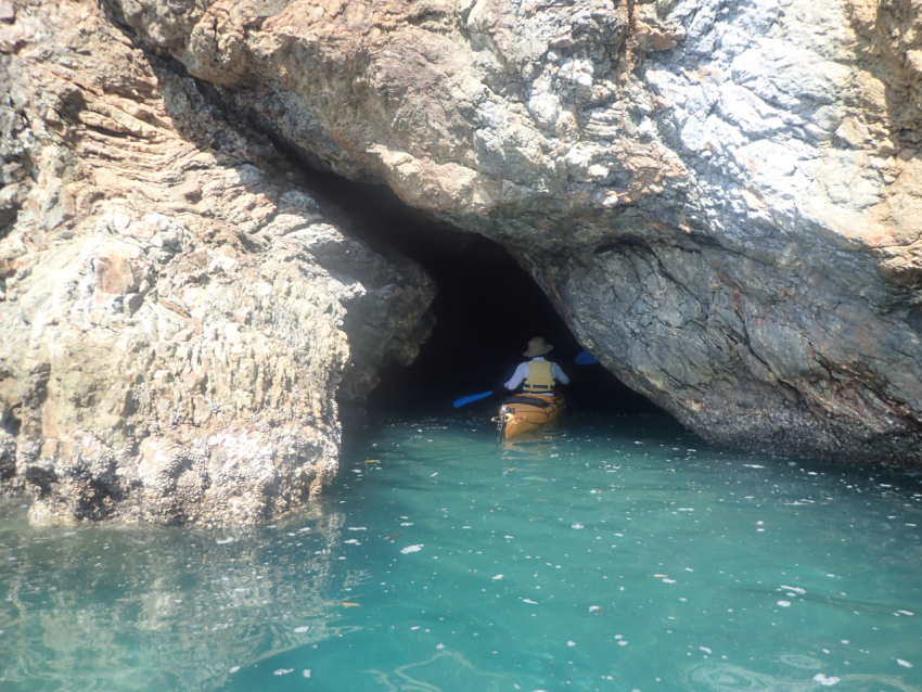 小浜海岸にはシーカヤックが1艇入れる程の小さなトンネルがあり、最初は少し勇気がいる。