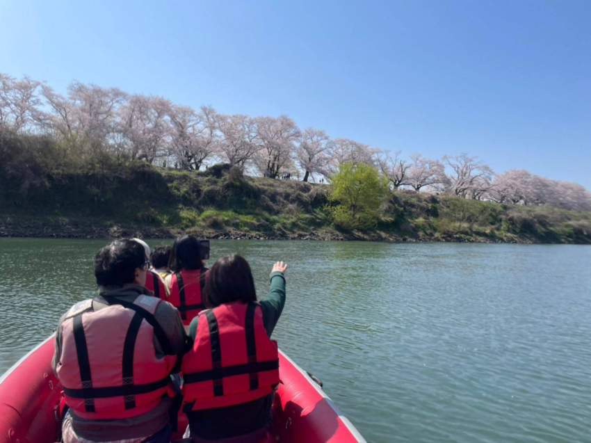 E-ボートに乗り京都府八幡市の背割提に咲く桜を 宇治川よりお花見しました。