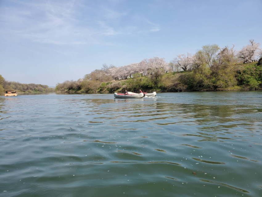 背割提のゴールまで行ったお花見船をスタート地点まで、回収するのに大忙しです。
