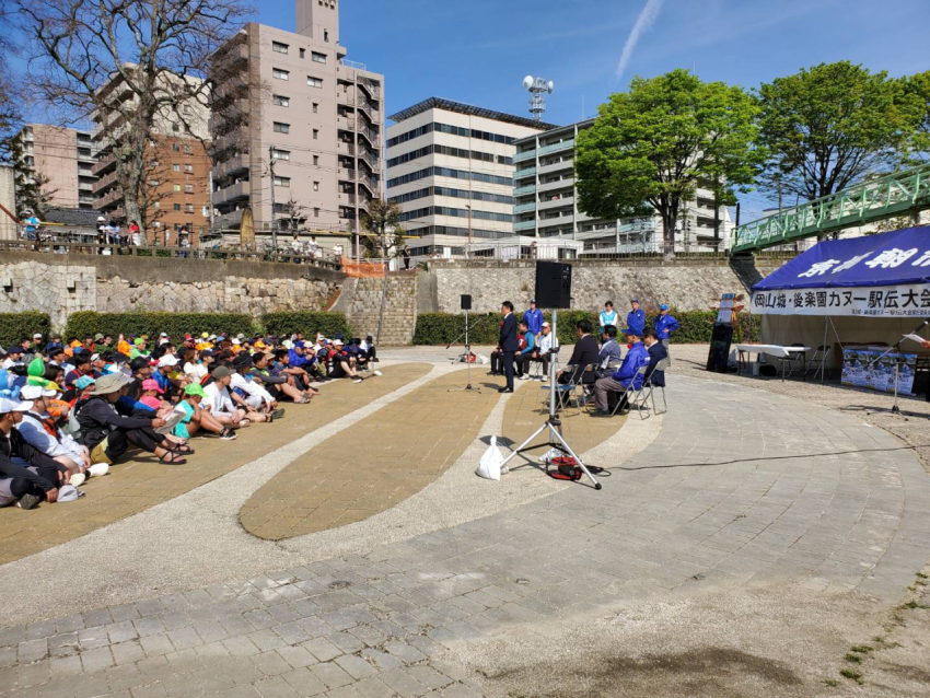 旭川の京橋下でスタートを待つ駅伝の参加者達