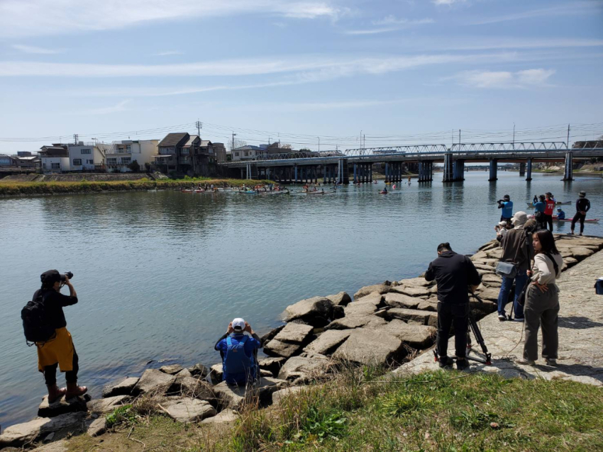 旭川の京橋下でスタートを待つ駅伝の参加者達